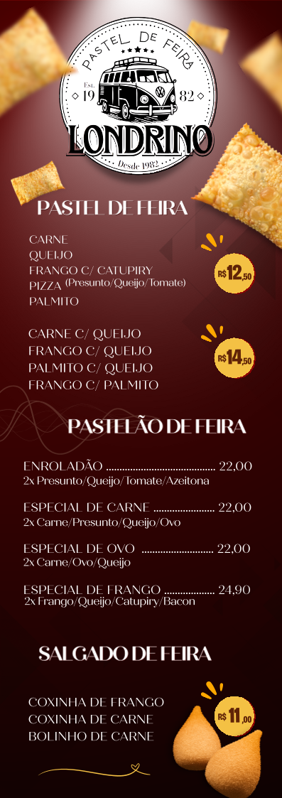 Renowned for their crispy and perfectly fried pastries, Londrino combines traditional recipes with high-quality ingredients. Customers rave about their expertly crafted pastéis, noting the delicious balance of flavors and textures in each bite. From savory to sweet fillings, every option is prepared fresh, ensuring a delightful experience that tantalizes the taste buds.